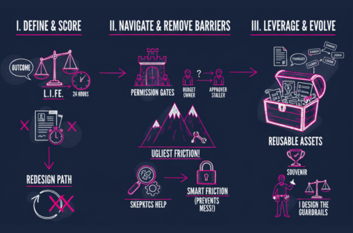 We didn’t say no, we said not yet. We built a clause taxonomy and a redline playbook, leverage started compounding. We worked with finance to reallocate budget, incentives clicked into place. We prewired security, friction dropped without removing the guardrails. We credited reviewers as authors on AI assisted outputs, ego stayed intact and focused on quality. When we revisited the vendor, the decision was easy, we had raised leverage, aligned incentives, tuned friction, and respected ego, so the tool finally had a real shot instead of a flashy audition.